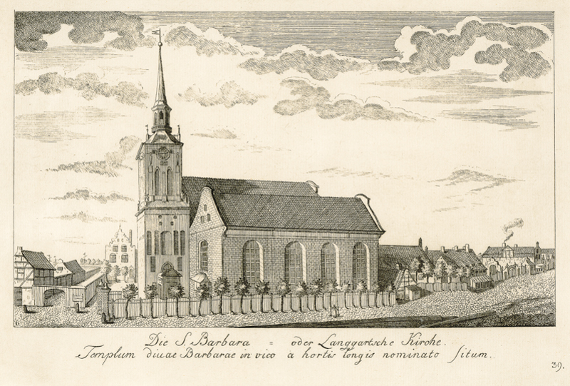 1387 – Przy Długich Ogrodach, powstaje szpital dla zakaźnie chorych z kaplicą pod wezwaniem św. Barbary, określaną jako Barbara Capella, podporządkowany kościołowi Najświętszej Panny Marii.