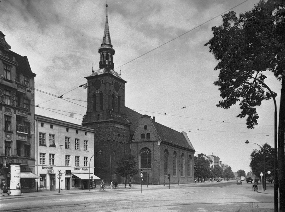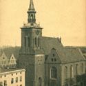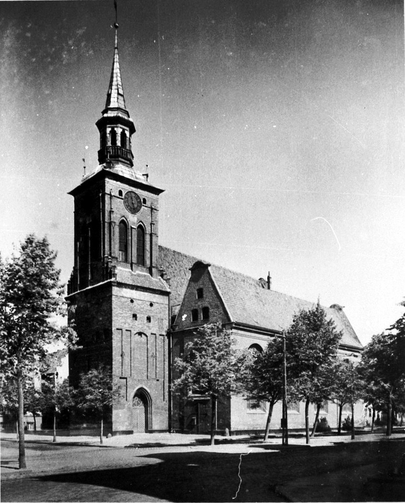 1945 – W wyniku działań wojennych zawaliły się ściany szczytowe, górna kondygnacja wieży oraz dachy, a wraz z nimi większość sklepień w północnych kaplicach oraz w arkadach oddzielających nawy. Zniszczeniu uległy też cenne organy.