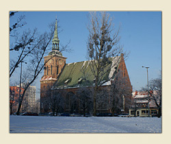 Wieża kościelna o wysokości 40m z umieszczonymi w 1969r trzema spiżowymi dzwonami, darem votum kapłanów Diecezji Magdeburskiej. Wieża jak dawniej góruje nad dzielnicą Długie Ogrody.